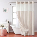 No Hooks Polyester Textured Shower Curtain with Snap-In Fabric Liner